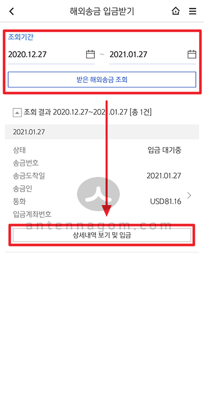 전체 메뉴 – 해외송금 – 해외송금수령을 통해 해외송금 프로세스로 진입하실 수 있습니다.