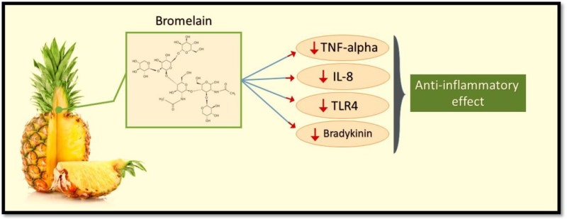단백질 분해 효과 브로멜라인은 단백질 분해 효소 중 하나입니다. 따라서 고기나 생선 등 단백질이 풍부한 음식을 섭취할 때 소화를 돕는다. 또한, 단백질이 변성되면서 생긴 혈전을 녹여 혈액순환을 개선한다. 그것은 또한 도움이 됩니다.