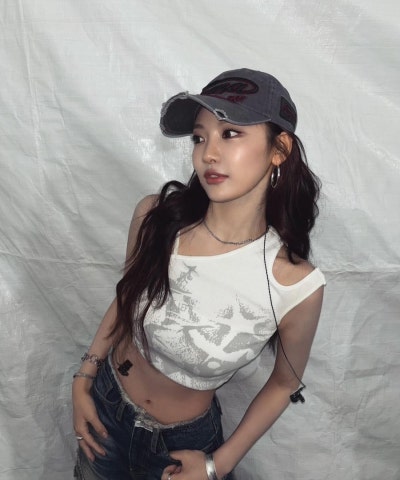 이 날, 나나는 노카라 재킷으로 넓은 청바지와 일치하는 민소매 나시와 공항 패션을 선보였습니다.