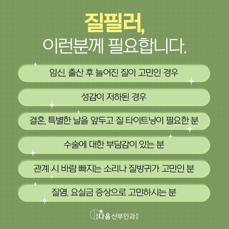 결론적으로, 질필러는 여성의 건강과 자존감 회복에 탁월한 도움을 줄 수 있었다. 단순히 외적인 변화가 아닌, 전반적인 삶의 질을 향상시킨 긍정적인 선택이었습니다. 나 자신을 사랑하고, 더 나은 삶을 위해 주저하지 않고 선택하는 용기가 변화의 시작이었습니다.
