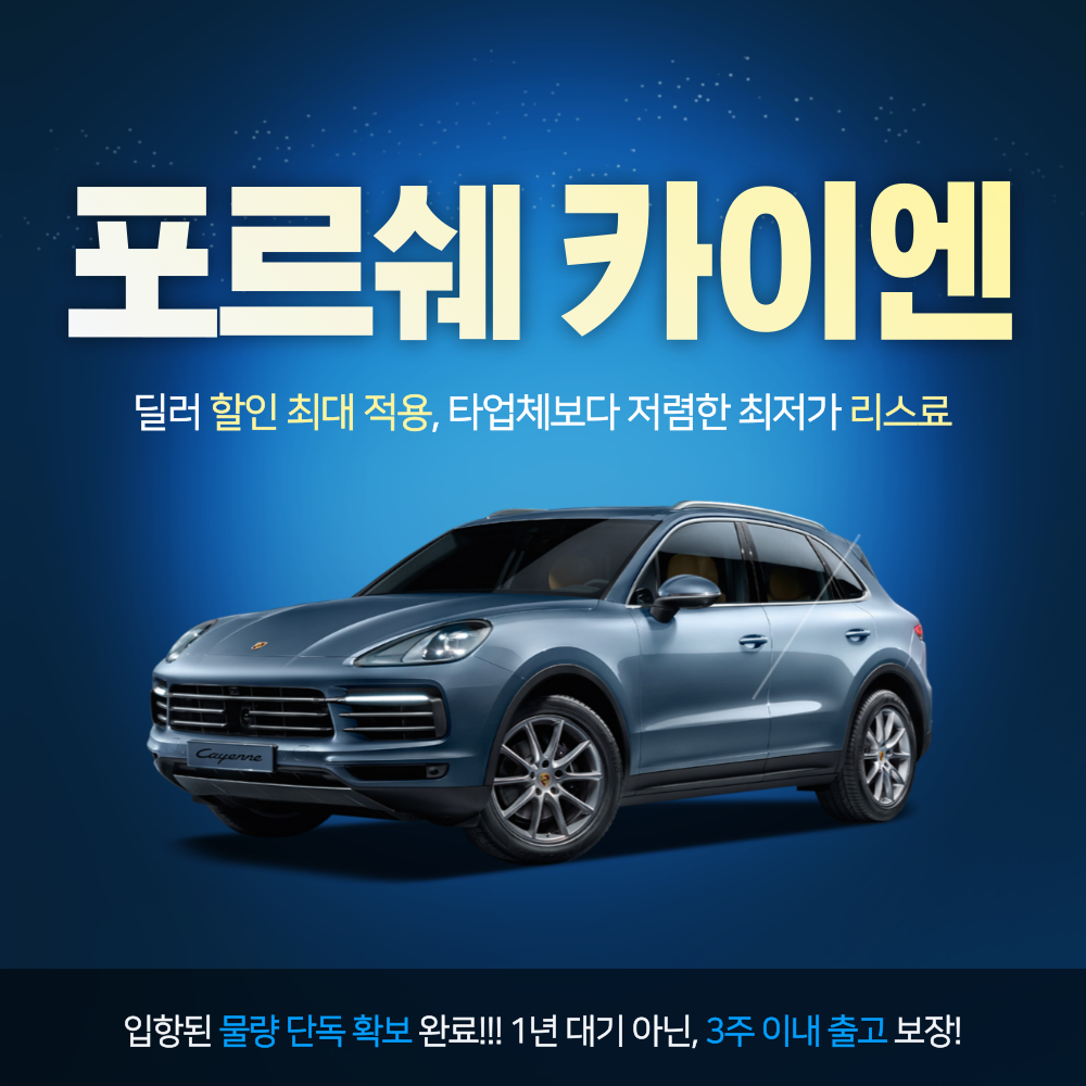 안녕하세요 2023년이 정말 코앞으로 다가왔습니다. 이번 달에 크리스마스가 있어서 그런지 기분이 들뜨네요. 벌써부터 곳곳에 크리스마스 분위기가 물씬 풍기니 당연한 일이겠죠… ㅎㅎ 이번주에 집에 가면 트리나 하나 사야할 것 같아요. 이번에는 포르쉐 카이엔 리스 정보를 전해드리려고 합니다~~