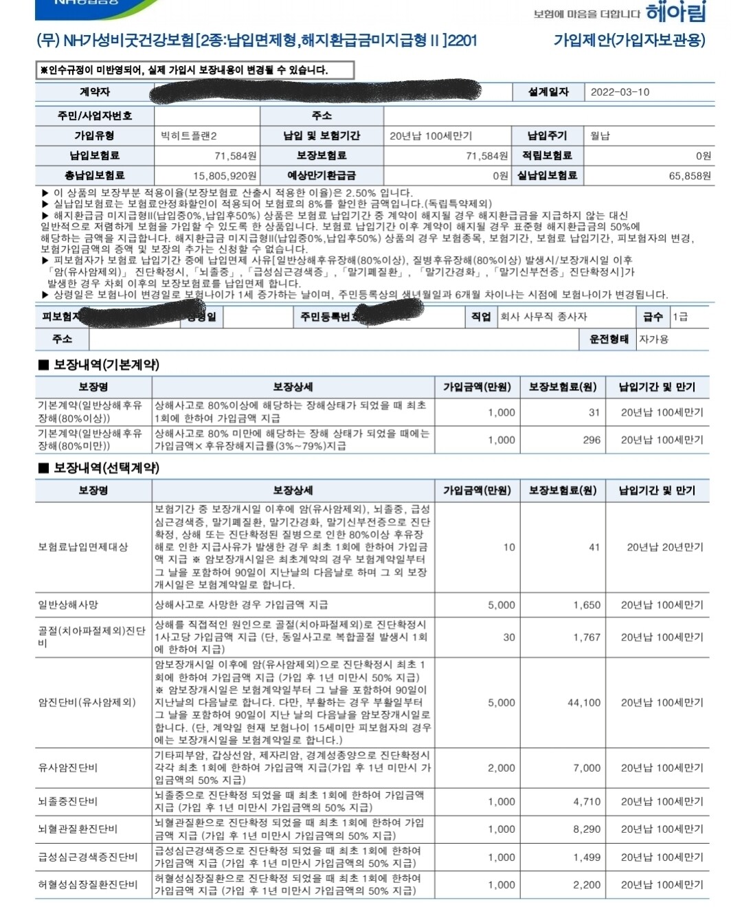 이 플랜은 실제로 고객이 가입한 플랜인데암진단비만 요청하셔서 계약한 설계안입니다! 이 상품은 “로그”라는 어플을 통해건강등급을 산출하여 등급이 좋게 나오면할인받아서 가입할 수 있는 플랜입니다! 혹시 건강검진 받아보신 분이 있으시다면꼭 로그어플을 통해 건강등급을확인해보시기 바랍니다오늘 보여드린 플랜 외에한도 수정,추가,삭제는얼마든지 가능하니 상담을 원하시는 분들은언제든지 문의해주시기 바랍니다 포스팅을 마치며