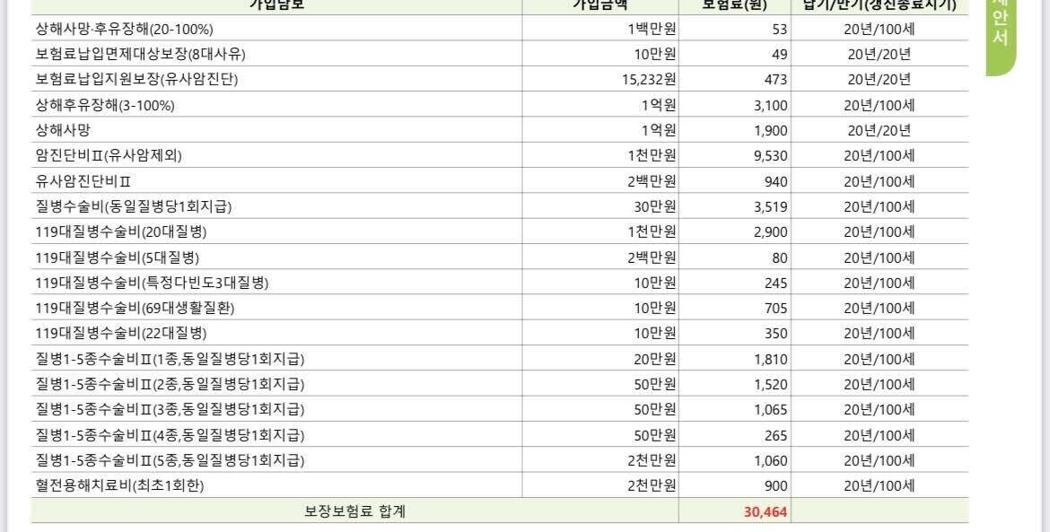 현시점 많은 사람들이 선호하는20대 여자보험으로 가성비 좋게 가입할 수 있는금액대로 준비했습니다가성비 좋게 구성한 플랜으로흔히 볼 수 있는 골절진단,깁스치료 등얼마든지 추가 가능하고 비용도 크지 않지만위에 말씀드렸듯이 처음 준비하시는 분들을대상으로 설계했습니다현재 가장 많은 사람들이 준비하고 있는암,뇌,심장에 대한 진단비와갑작스러운 상해나 질병에 대비할 수 있는1-5종 수술비로 가장 기본이 되는보장들 위주로 구성된 가성비 플랜입니다 요즘은 뇌혈관,허혈성 수술비도 중요해서많은 분들이 챙겨가고 있습니다뇌와 심장쪽에 문제가 생겨서수술을 하게 되면스텐트라는 기구를 삽입하여혈액순환을 원활하게 도와주는시술을 하게 되는데요하지만 이 시술은 영구적인 것이 아닌주기적으로 교체가 필요하기 때문에매회지급 받을 수 있는 수술비도함께 가져가는 것을 추천드리고 있습니다 바로 30대 여성 기준으로도 보겠습니다